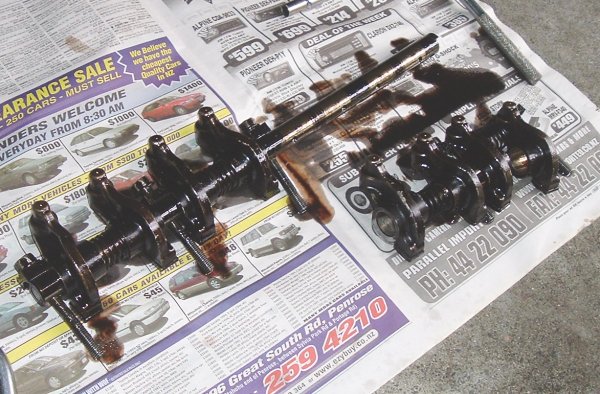 Rocker shaft, partly reassembled. It pays to keep all the bits in the right order...